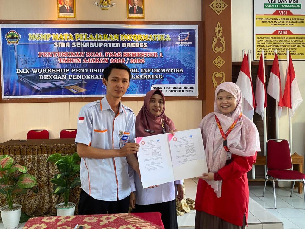 Brebes, 8 Oktober 2025 — Musyawarah Guru Mata Pelajaran (MGMP) Informatika tingkat SMA/SMK/MA se-Kabupaten Brebes menggelar kegiatan “Penyusunan Modul Informatika Kelas X” bekerja sama dengan Program Studi S1 Informatika Universitas Bima Sakapenta (UBISA). Kegiatan ini diselenggarakan di SMAN 1 Ketanggungan, Brebes, dan diikuti oleh seluruh guru Informatika dari satuan pendidikan SMA, SMK, dan MA se-Kabupaten Brebes.